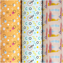 Бумага упаковочная мелованная ЗОЛОТАЯ СКАЗКА, НАБОР 3 шт., «Memphis», 70х100 см, 3 дизайна