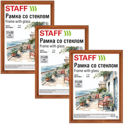 Рамка STAFF Classic с деревянным профилем 17 мм, комплект 3 шт., А4 (21x30 см), темно-коричневая, с стеклом