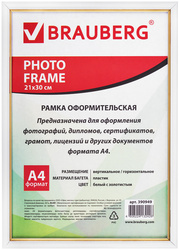 Рамка BRAUBERG HIT2, 21х30 см, пластик, профиль 12 мм., белая с золотом, с стеклом