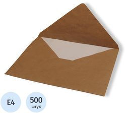 Конверт Е4 80 г/кв.м коричневый размером 290×390 мм выполнен из крафт бумаги 80 г/кв.м, не имеет клеевого нанесения на клапане, клапан треугольный. Предназначен для почтовых отправлений различной документации, писем. Упакован в короба по 500 штук.