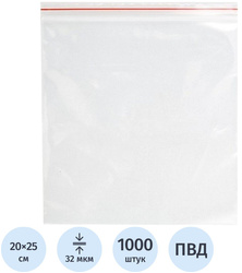 Пакеты грипперы, 200x250 мм, 32 мкм, 1000 шт/уп, эконом