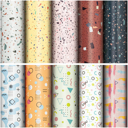 Бумага упаковочная подарочная мелованная ЗОЛОТАЯ СКАЗКА, «Terrazzo&Memphis», 70х100 см, 10 дизайнов ассорти, 50 шт/уп