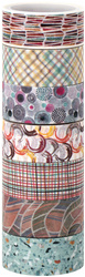 В наборе содержится 7 бумажных лент с различными дизайнами на полупрозрачной клеевой основе, каждая из которых намотана на пластиковую втулку. Ширина ленты 15 мм позволяет наклеить её даже на небольшие поделки, а длина 3 м даёт большой простор для творчества.