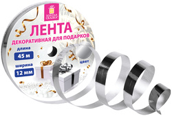 Лента упаковочная декоративная для подарков ЗОЛОТАЯ СКАЗКА, металлик, 12 мм х 45 м, серебристая
