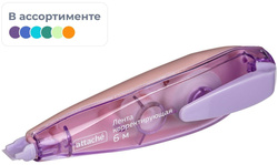 Корректирующая лента Attache, предназначенная для исправления строчного текста на любом типе бумаги, выполнена в форме ручки. Корпус ленты имеет эргономичный дизайн для комфортного использования во время корректировки текста. Прозрачный тонированный корпус позволяет видеть расход ленты, а съемный колпачок защищает ее от высыхания. Имеет функцию подкручивания. Не требует длительного высыхания, можно сразу писать по исправленному тексту. Не оставляет следов и черных полос на документе при отправке по факсу. Длина корректирующей ленты — 6 м, ширина — 5 мм. Корпус оснащен пластиковым клипом для фиксации ленты на обложке тетради. Упаковка — блистер с европодвесом. Внимание! Товар поставляется в нескольких вариантах цвета корпуса (без возможности выбора).