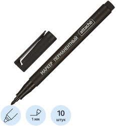 Маркер перманентный ATTACHE, черный, линия 1мм, 10 шт/упак