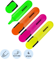 Набор текстовыделителей KORES, 4 цвета, линия 0.5 - 5 мм