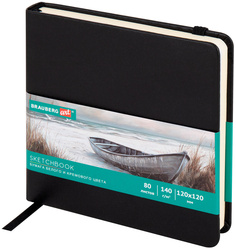 Скетчбук слоновая кость+белая BRAUBERG ART CLASSIC, 80 листов, 120х120 мм, 140 г/м2, кожзам, резинка, черный