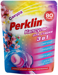 Капсулы для стирки белья PERKLIN 3 в 1, Сакура с кондиционером, 80шт/уп