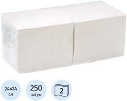 Салфетки бумажные, 2 сл, 24х24см, целлюлоза, 250шт/уп, белые