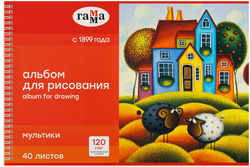 Альбом для рисования Гамма «Мультики»,, 40 листов, А4, на гребне,