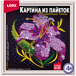 Картина из пайеток LORI «Сиреневая лилия», 20х20 см, основа, пайетки, гвоздики, рамка