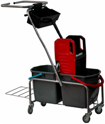 Тележка уборочная ECO-FORCE, 2 ведра по 25 л, отжим, лоток для химии, держатель для мешка, металлический каркас, бесшумные колеса