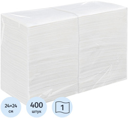 Салфетки бумажные, 1 сл, 24х24, 400шт/уп, белые, целлюлоза