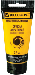 Краска акриловая BRAUBERG ART CLASSIC, желтая средняя, 75 мл, туба