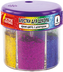 Блестки (глиттер) для декора ОСТРОВ СОКРОВИЩ, поделок, DIY, творчества, оформления, диспенсер с дозатором, 6 цветов по 10 грамм