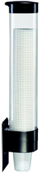 Держатель для стаканов крепится к корпусу кулера при помощи мощного магнита. Рассчитан на размещение стандартных одноразовых стаканчиков диаметром 70 мм. Выполнен из пластика чёрного цвета. Вмещает 70 стаканчиков, прозрачная колба обеспечивает видимость оставшегося количества.