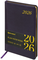 Еженедельник датированный BRAUBERG Iguana золотой срез на 2026 год, А5 (145х215 мм), 64 листа, темно-фиолетовый