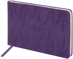 Внутренний блок включает 64 листа тонированной бумаги плотностью 70 г/м2. Благодаря малому формату А6 (105х160 мм) еженедельник удобно использовать как в офисе, так и на выездных деловых встречах. Гибкая обложка фиолетового цвета, стилизованная под гладкую кожу, подходит для горячего тиснения.
