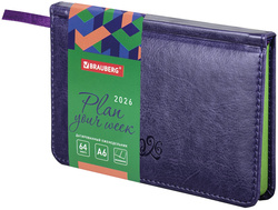Еженедельник датированный BRAUBERG Rainbow цветной срез на 2026 год, А6 (155х95 мм), 64 листа, сиреневый