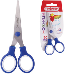 Ножницы ПИФАГОР, 130 мм, резиновые вставки, ассорти