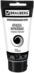 Краска акриловая BRAUBERG ART CLASSIC, белила цинковые, 75 мл, туба