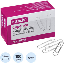 Скрепки ATTACHE оцинкованные, 33 мм, 100 шт/упак