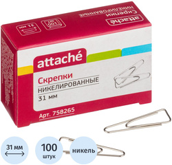 Скрепки ATTACHE никелированные, 31 мм, треугольные, с отгибом, 100 шт/упак