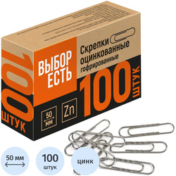 Скрепки оцинкованные ВЫБОР ЕСТЬ, 50 мм, гофрированные, 100 шт/упак