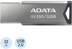 Флеш-диск ADATA AUV250, 32GB, USB 2.0, серебристая, металлический корпус