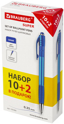 Набор шариковых авторучек BRAUBERG «SUPER», грип, 12 штук