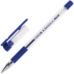 Шариковая ручка с прозрачным корпусом и резиновым грипом для удобства письма, исключающим скольжение пальцев. Ручка снабжена сменным стерженем 140 мм, что позволяет увеличить срок службы. Диаметр пишущего узла 0,7 мм создает тонкую линию письма, равную 0,35 мм. Детали синего цвета, выполненные в цвет чернил, соответствуют офисному стилю.