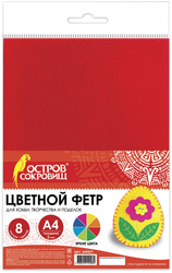 Цветной фетр, мягкий ОСТРОВ СОКРОВИЩ, А4, 2 мм, 8 листов, 8 цветов, плотность 170 г/м2