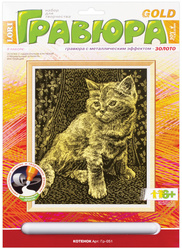 Гравюра LORI, с эффектом золота «Котёнок», 18х24 см, основа, штихель