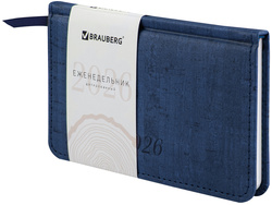 Еженедельник датированный BRAUBERG Wood под кожу на 2026 год, А6 (155х95 мм), 64 листа, синий