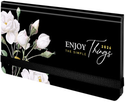 Внутренний блок содержит 64 листа офсетной бумаги белого цвета плотностью 60 г/м2. Благодаря малому формату (171х93 мм) еженедельник удобно использовать как в офисе, так и на выездных деловых встречах. Обложка 7БЦ (твердый переплет с матовой пленкой и выборочным лаком) обеспечивает долговечность при активном использовании. Резинка-фиксатор надежно защищает от случайного раскрытия в сумке или портфеле. Еженедельник снабжен справочным материалом.