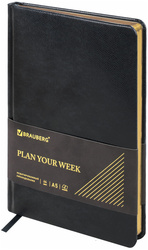 Еженедельник недатированный BRAUBERG Iguana золотой срез, А5 (145х215 мм), 64 листа, черный