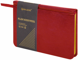 Еженедельник недатированный BRAUBERG Iguana золотой срез, А6 (155х95 мм), 64 листа, красный
