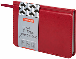 Еженедельник недатированный BRAUBERG Rainbow цветной срез, А6 (155х95 мм), 64 листа, красный