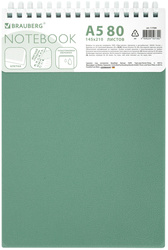 Блокнот на силиконовой спирали в пластиковой обложке BRAUBERG, А5, 80 листов, зеленый, клетка