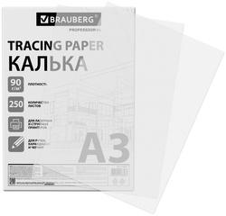 Калька для печати и творчества BRAUBERG, 250 листов, А3, 90 г/м2, в папке, высокая прозрачность