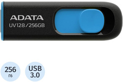 Флеш-диск ADATA UV128, 256GB, USB 3.0, черно/синяя