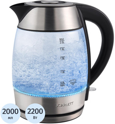 Чайник SCARLETT SC-EK27G13, 2200 Вт, 2 л, скрытый нагреват. элемент, серебристый