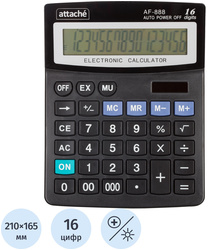Калькулятор Attache AF-888 настольный в пластиковом корпусе с 16-разрядным ЖК-дисплеем. Имеет оптимальный набор вычислительных функций: основные математические операции, расчет процентов, извлечение квадратного корня, запоминание промежуточных результатов. Позволяет корректировать введенное число. Удобная клавиатура снабжена кнопкой ввода двойного и тройного нуля. В калькуляторе имеется два источника питания: солнечная батарея и батарейка AA. Размер: 210×165×48 мм. Тип клавиатуры: пластик. Наличие металлической панели: нет. Cовместимые батарейки находятся в разделе «Расходные материалы». Обращаем внимание, что батарейка не входит в комплектацию данного калькулятора.