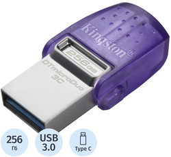 Флеш-память KINGSTON microDuo, 256GB, USB 3.0, фиолетовая
