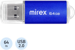Флеш-диск MIREX UNIT, 64GB, USB 2.0, синяя