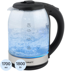 Чайник SCARLETT SC-EK27G10, 1800 Вт, 1,7 л, скрытый нагреват. элемент, серебристый