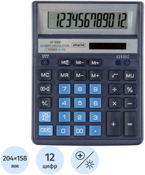 Калькулятор Attache AF-888 настольный в пластиковом корпусе синего цвета с 12-разрядным ЖК-дисплеем. Имеет оптимальный набор вычислительных функций: основные математические операции, расчет процентов, расчет наценки, извлечение квадратного корня, запоминание промежуточных результатов. Калькулятор имеет функцию автоматического отключения питания. Удобная клавиатура снабжена кнопкой ввода двойного нуля. В калькуляторе имеется два источника питания: солнечная батарея и батарейка G10 (не подлежит замене), а также есть место для установки батареи AA (не входит в комплект). Размер корпуса: 204×158×38 мм. Размер дисплея: 111×24 мм. Материал кнопок клавиатуры: пластик. Перед использованием внимательно ознакомьтесь с инструкцией.