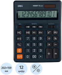 Настольный калькулятор Deli M888 — незаменимый помощник в офисе, школе и дома. Большой размер, эргономичная форма, удобные кнопки. Оптимальный набор функций поможет автоматизировать расчеты: вычисление квадратного корня, коррекция последнего введенного значения, кнопка 00, двойная память, расчет наценки, расчет процентов. Калькулятор в пластиковом корпусе, имеет большой 12-разрядный жидкокристаллический экран. Двойное питание. Размеры: 202.2×158.5×31.3 мм. В комплекте 1 батарейка LR54.