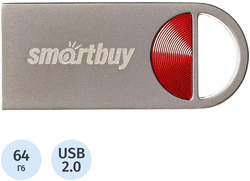 Флеш-диск SMARTBUY Metal, 64GB, USB 2.0, красно/серая, металлический корпус